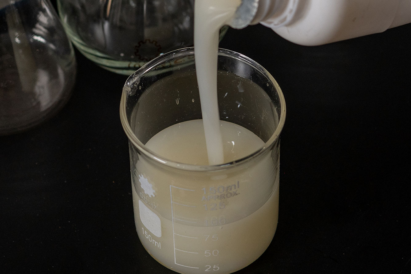 防水彈性乳液外觀為乳白色乳液狀,其主要成分為自交聯(lián)丙烯酸酯共聚型樹(shù)脂,屬于水性乳液,具有低粘度、高固含量的特點(diǎn)。
